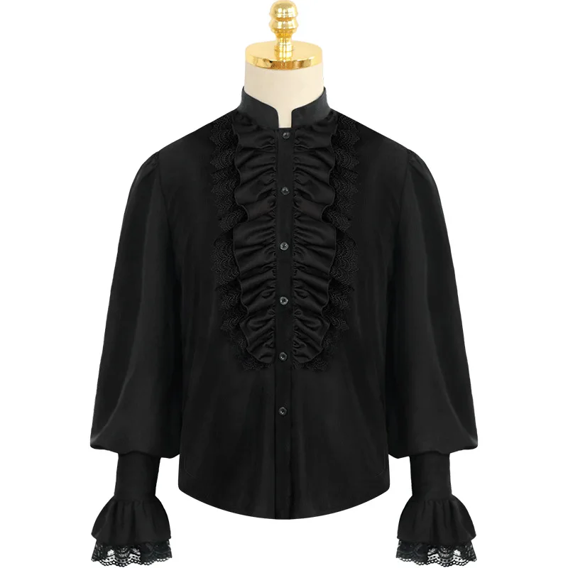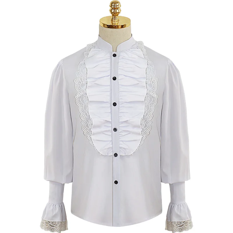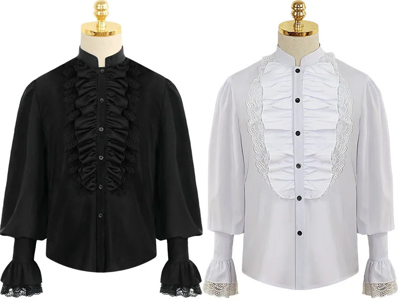 Белая хлопковая рубашка с оборками и воротником-стойкой, Готическая рубашка с рукавами-фонариками, мужской средневековый Топ, викторианские рубашки для мужчин, модная Ретро-одежда