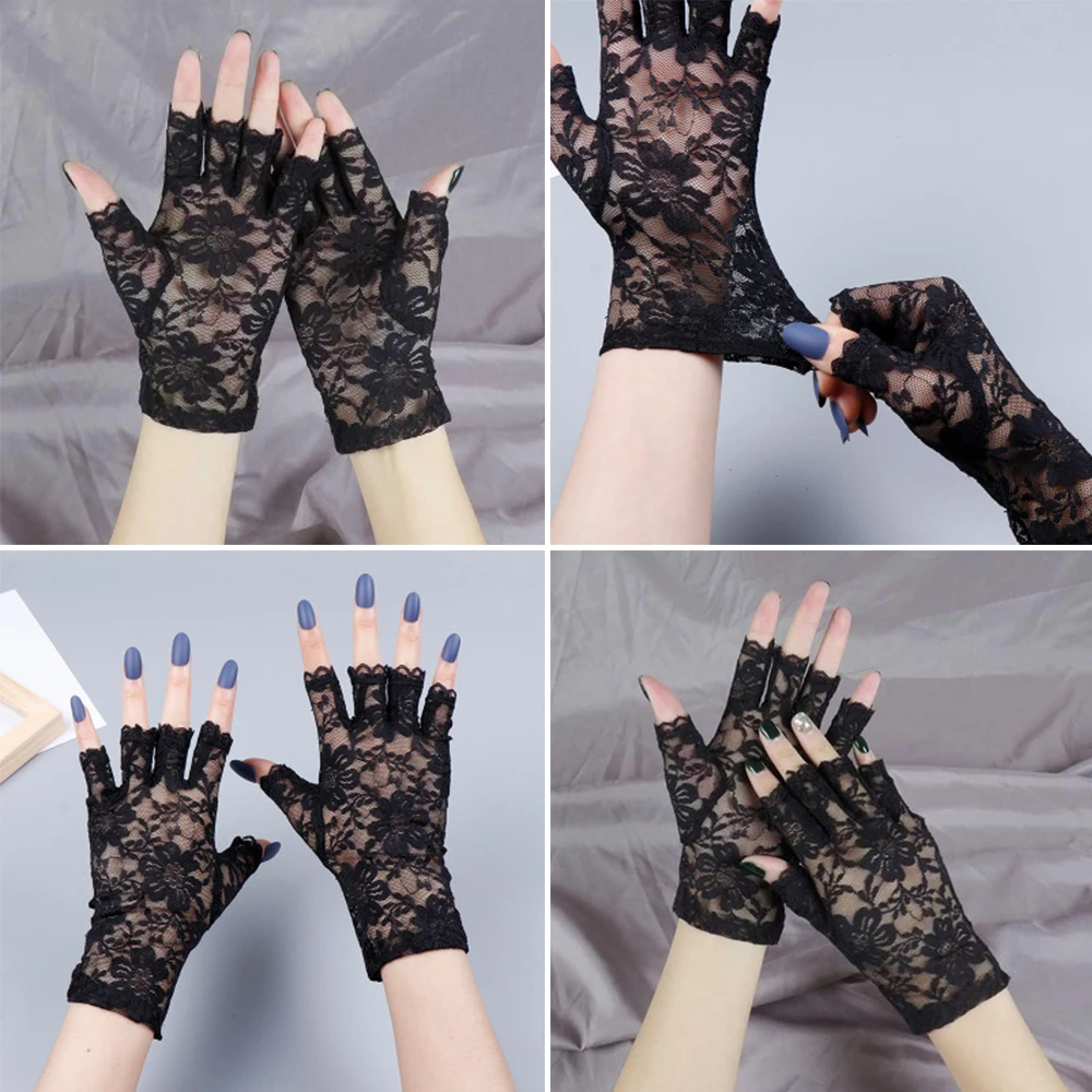 2022 Женские винтажные Потрясающие солнцезащитные пикантные кружевные перчатки для вождения в готивечерние стиле короткие перчатки с защитой от УФ-лучей Стильные варежки без пальцев