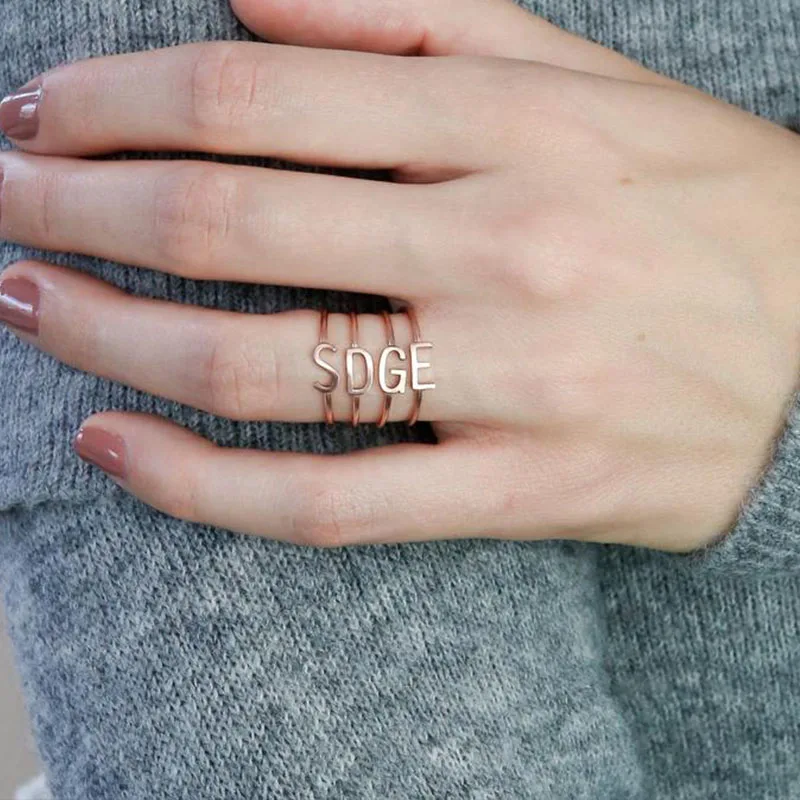 Кольцо с инициалами, золотое, винтажное, готическое, кольца с буквами