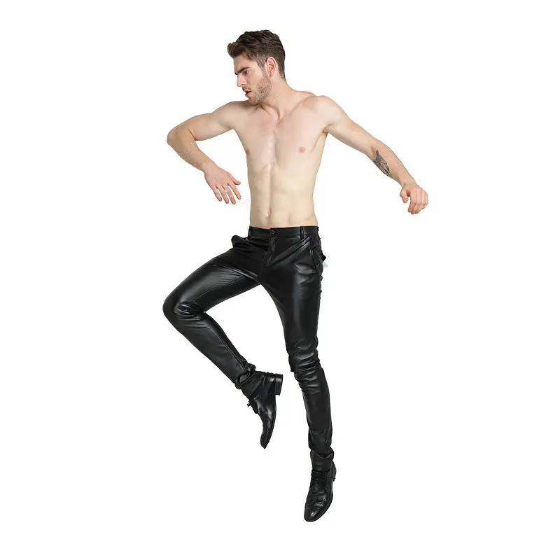 Мужские брюки, новые стильные кожаные брюки, мужская мода, узкие мо...