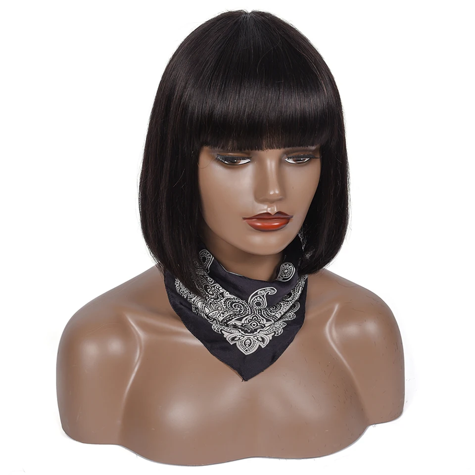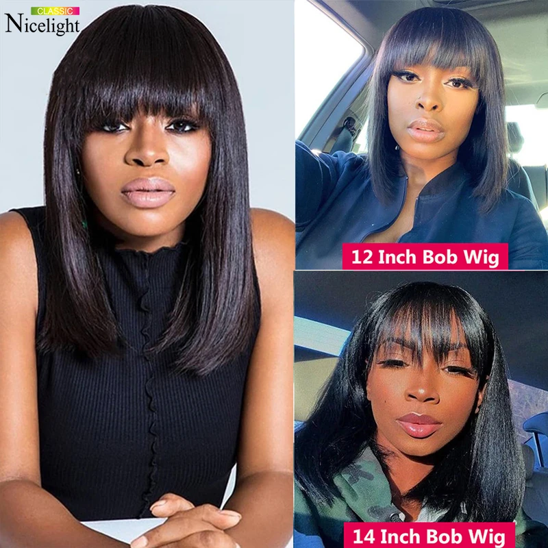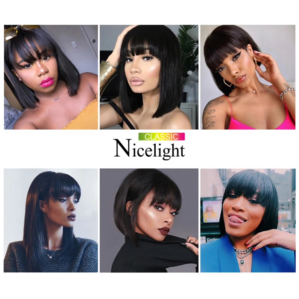 Парики Nicelight из натуральных неповрежденных малазийских волос, прямые, с челкой