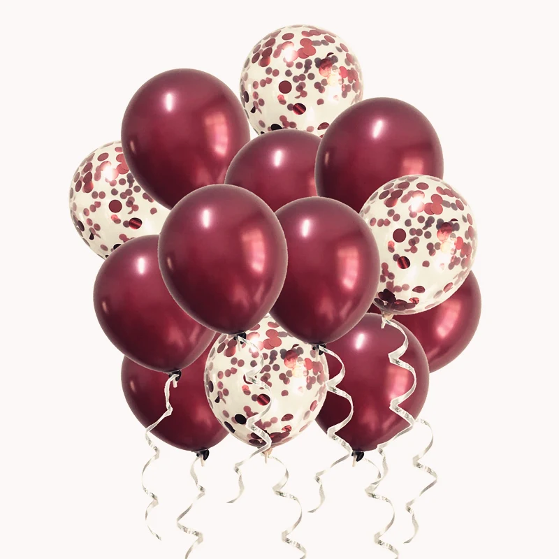 20 шт., розовое золото, бордовые воздушные шары набор конфетти, хромированные воздушные шары, украшение для свадьбы, юбилея, дня рождения, детские металлические шары