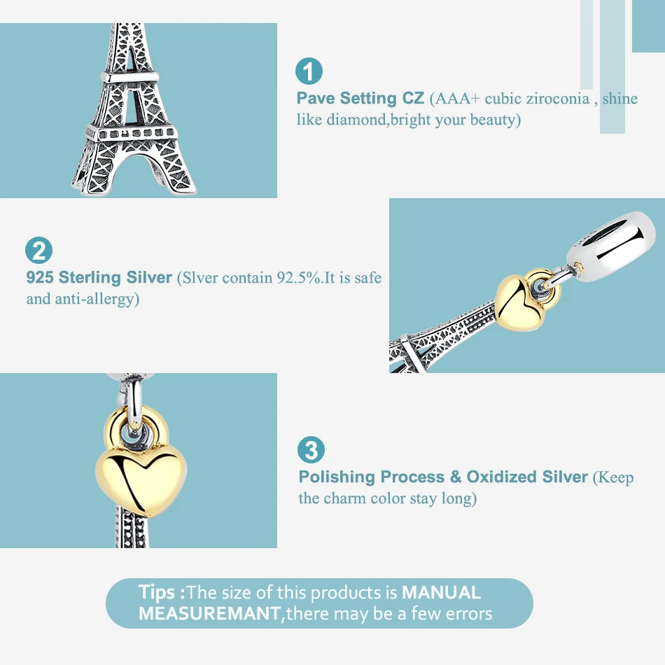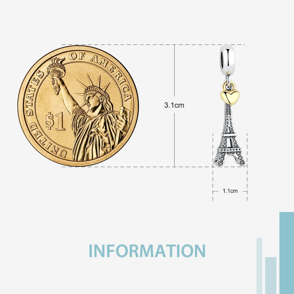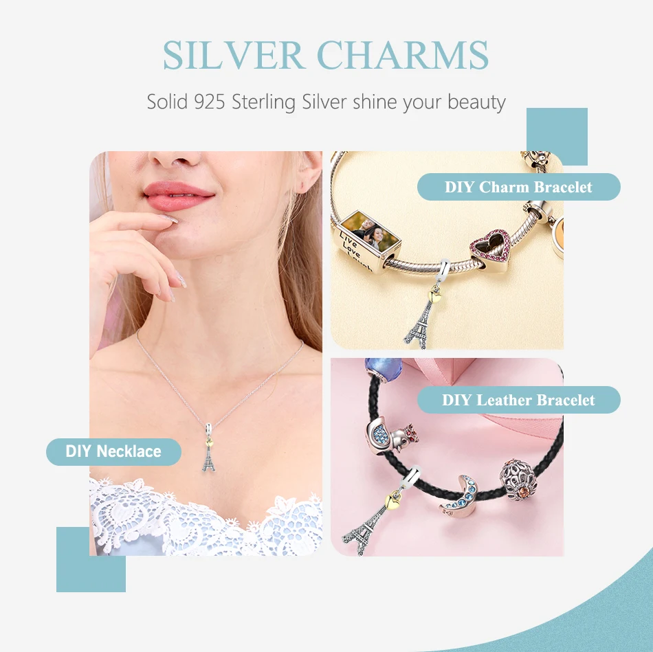 925 стерлингового серебра Эйфелева подвески в виде башни бусы, подх...