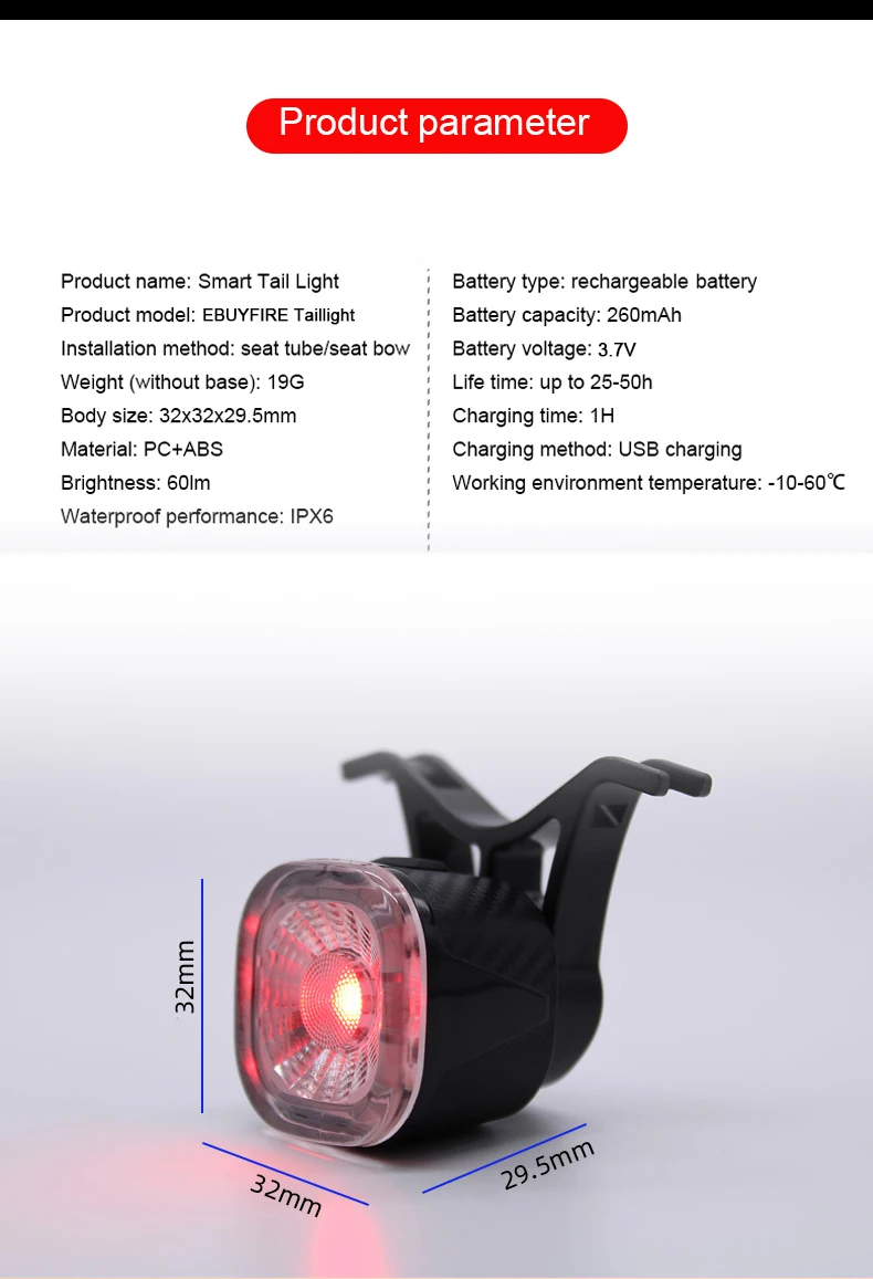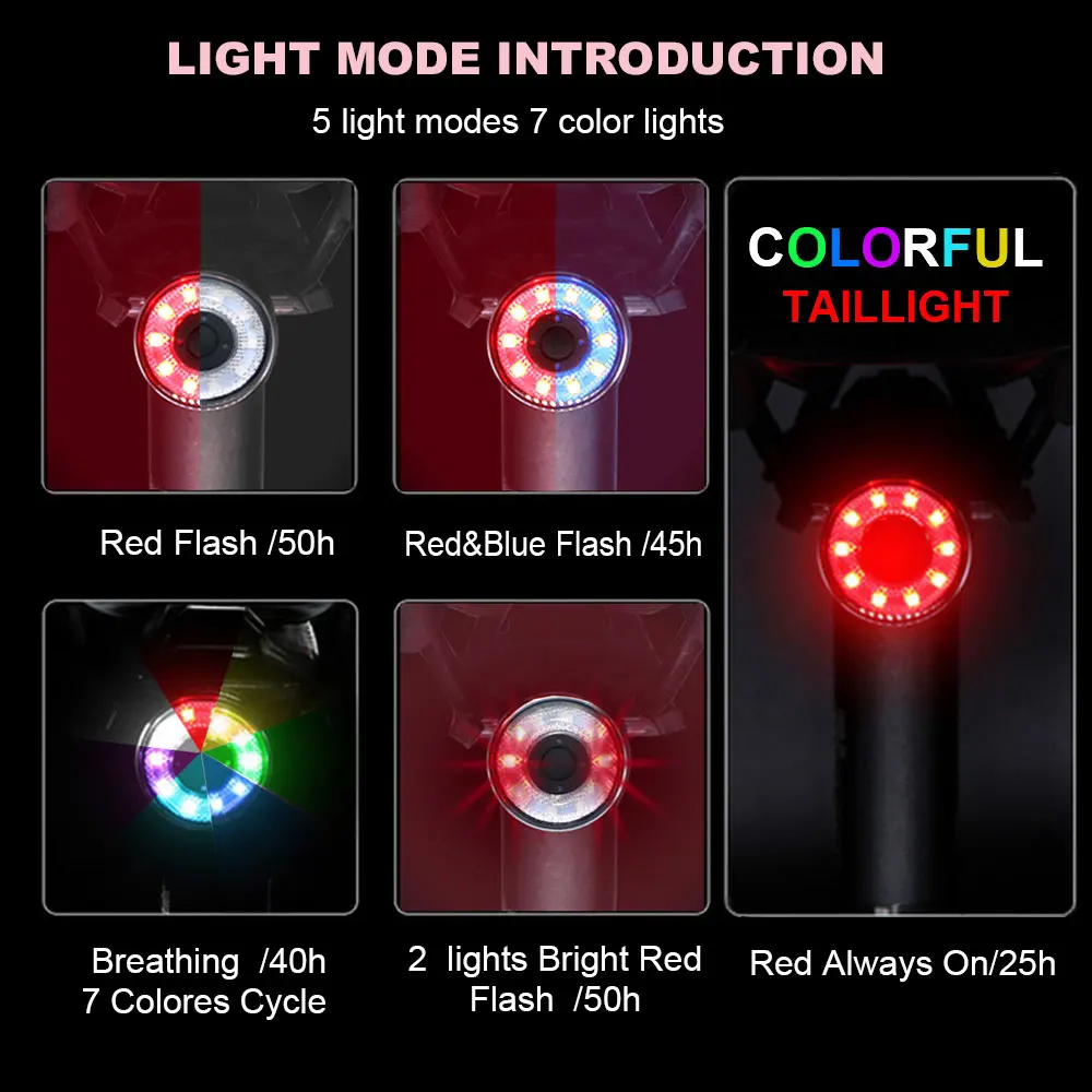 Умный велосипедный светильник, тормозная индукция, велосипедный задний светильник s, USB зарядка, 22 COBLED, 3 режима, непромокаемый задний светильник, Mtb, Горный цикл, светильник
