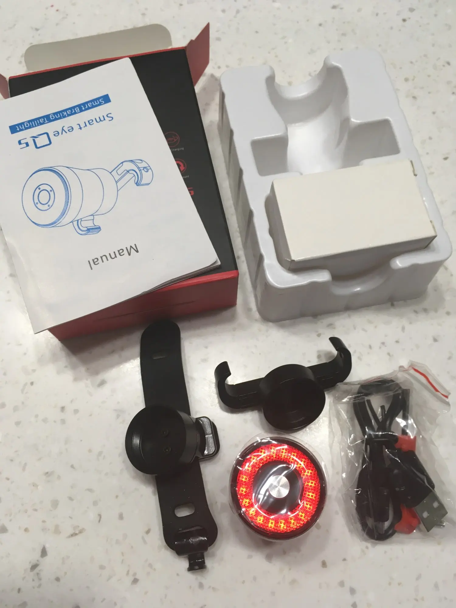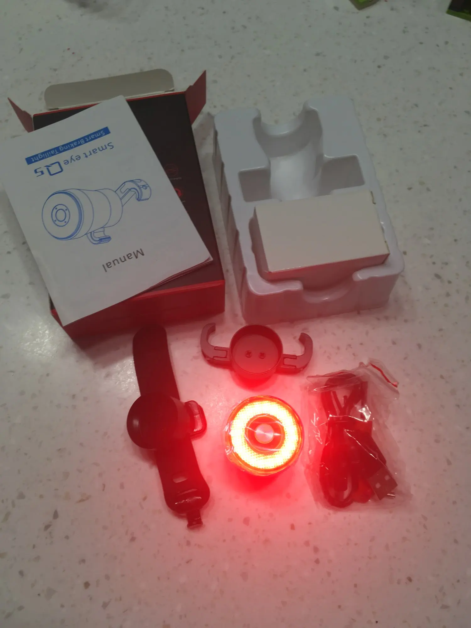 Товар как на картинке, доставили очень быстрая - 23 заказал, 26 получил. Не знаю будет ли работать функция торможения, в руках как-то хитро трясти приходится, чтобы ярче зажегся. В целом фонарик вызывает приятное впечатление, крепления сделаны хорошо, то что на штырь - разбирается на жгут и прищепку, можно прикрепить не только штатно но и за ткань, например, повесить на рюкзак