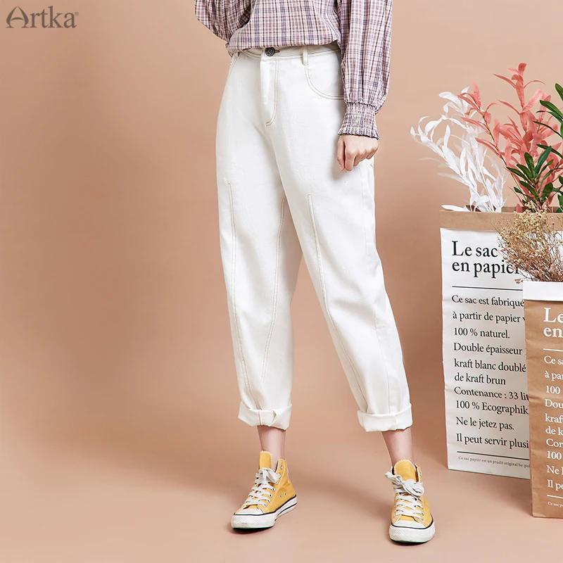 Женские прямые штаны ARTKA, белые свободные повседневные брюки-султанки из 2019 хлопка, KN15299Q, осень 100%