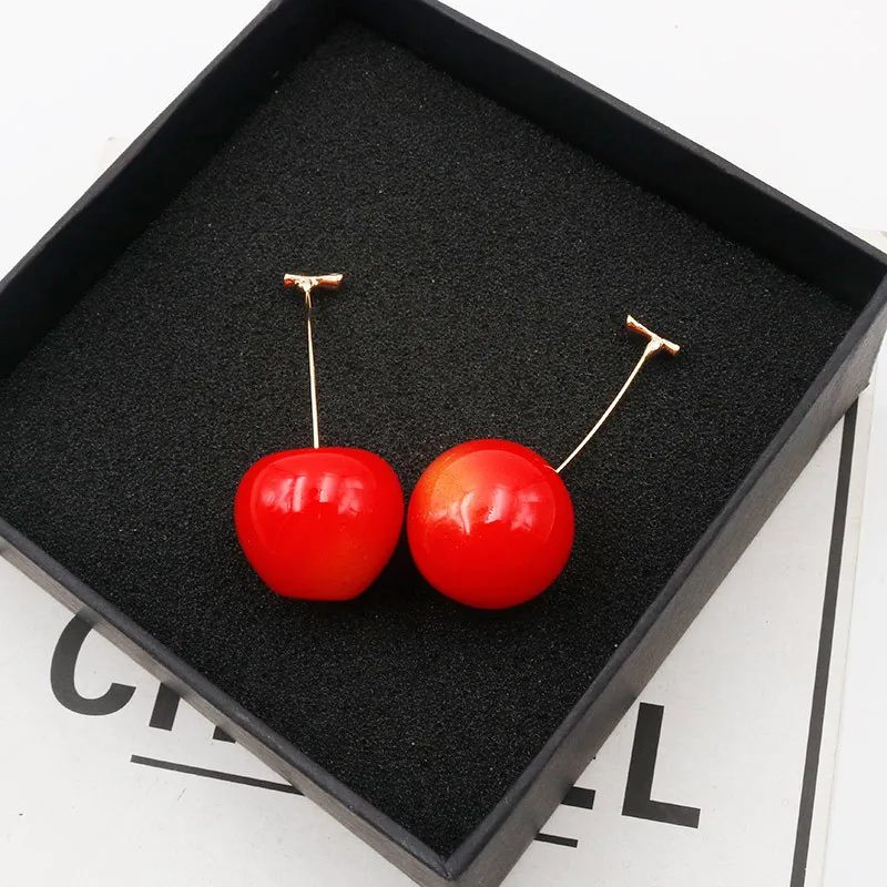 Вишневые дизайнерские серьги, Летние Стильные серьги вишневого цвета, милые длинные серьги-капли для женщин и девушек, креативные корейские модные украшения
