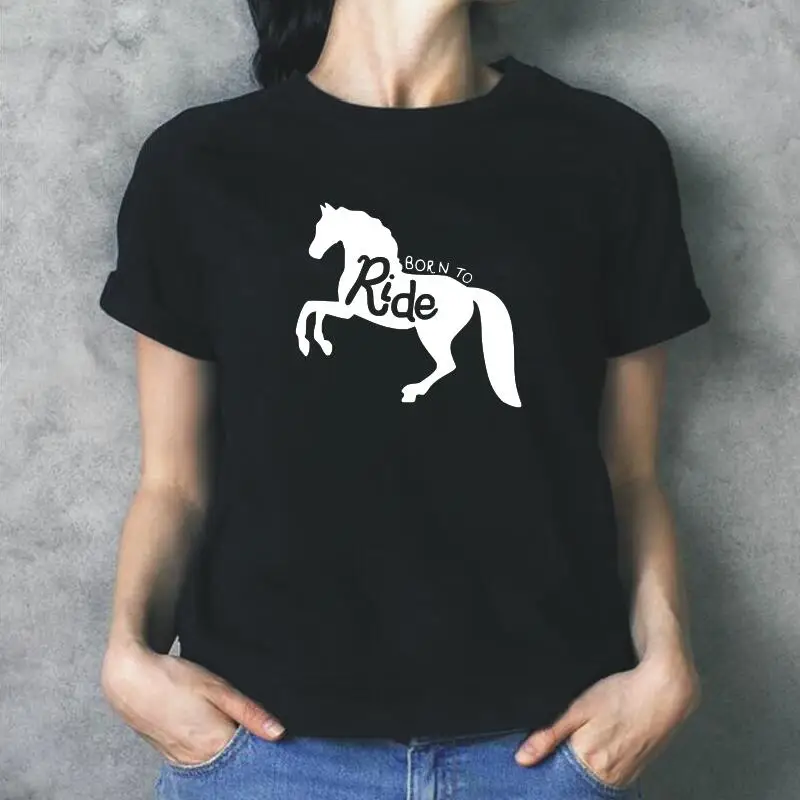 Женская футболка с надписью Born To Ride Horse, забавная футболка, Женская Повседневная хипстерская футболка с коротким рукавом в стиле Харадзюку, женские топы