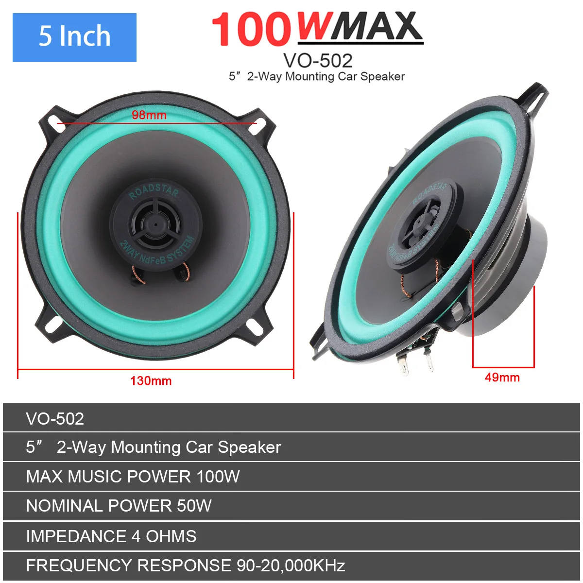 Универсальный автомобильный коаксиальный динамик, 4 дюйма, 56,5 дюйма, 100 Вт