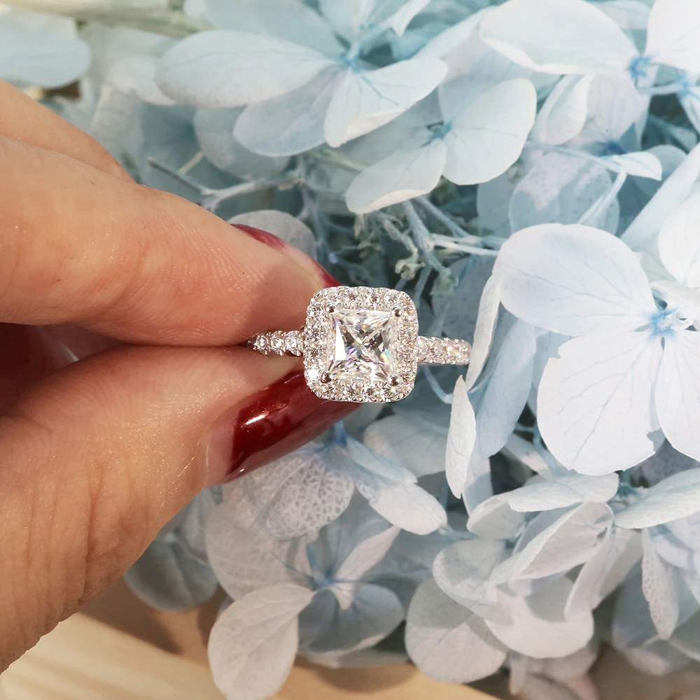 5 мм 1ctw карат элегантный DEF цвет принцесса Halo обручальное свадебное Moissanite бриллиантовое кольцо для женщин в серебре информация о товаре: