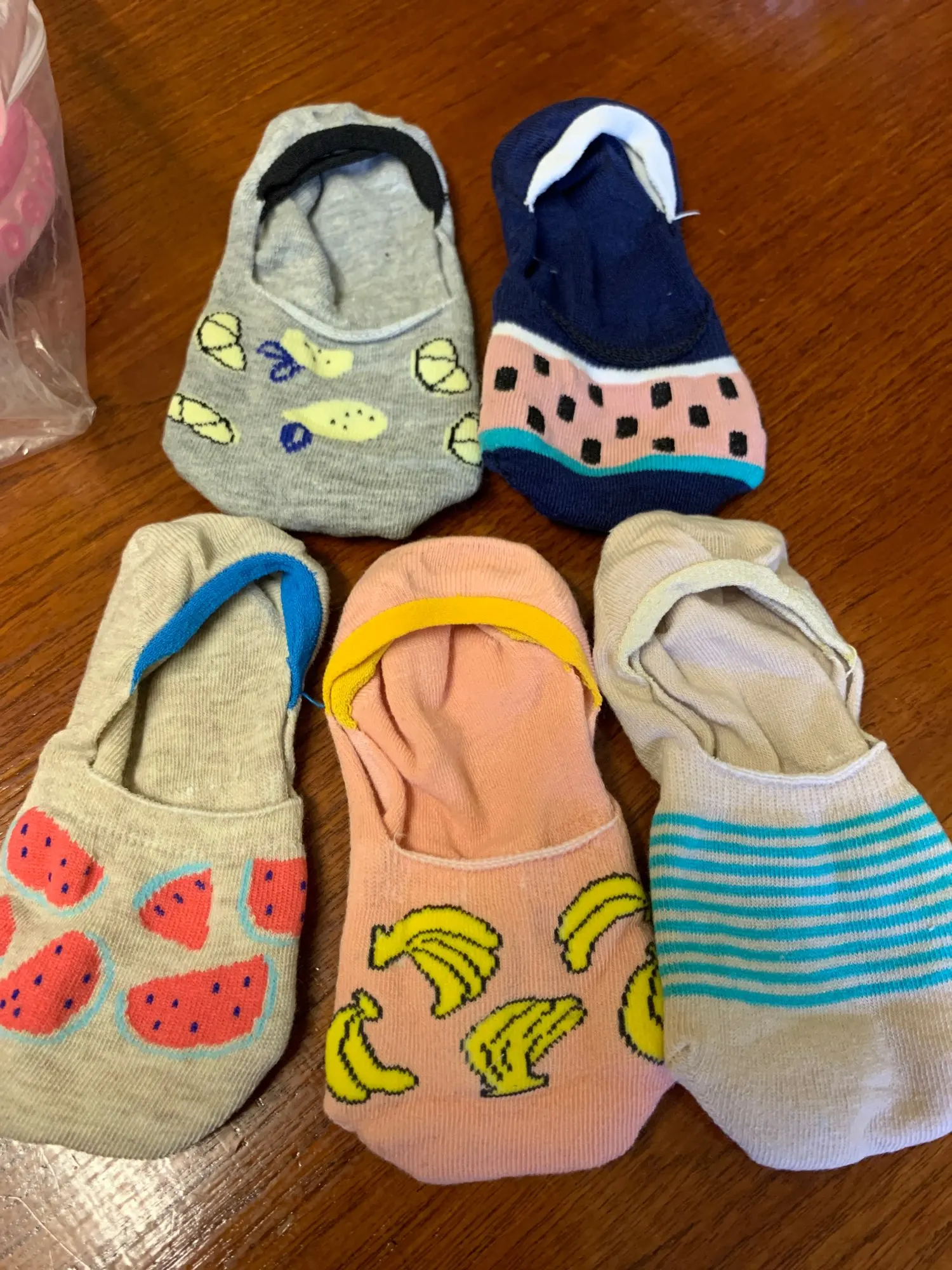 Очень классные носки, но одни оказались мне маловаты, каждая пара как будто под разный размер) но в принципе они настолько милые, что не могу поставить низкую оценку)