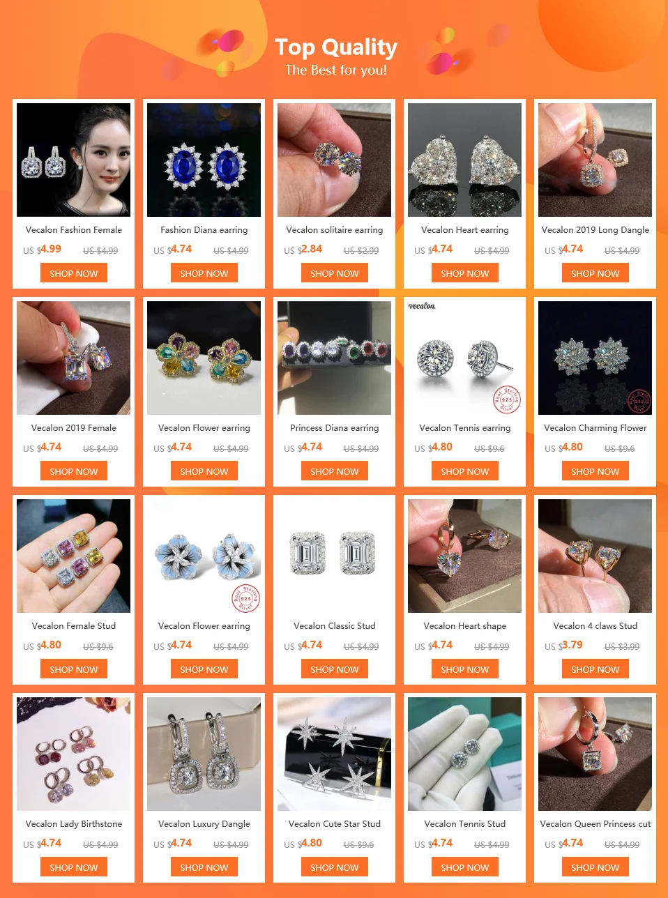 Серьги-гвоздики Vecalon с фианитами AAAAA, массивные свадебные серьги из серебра 925 пробы для женщин, Ювелирное Украшение