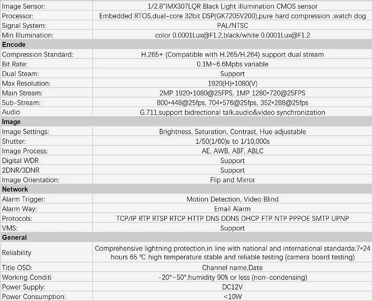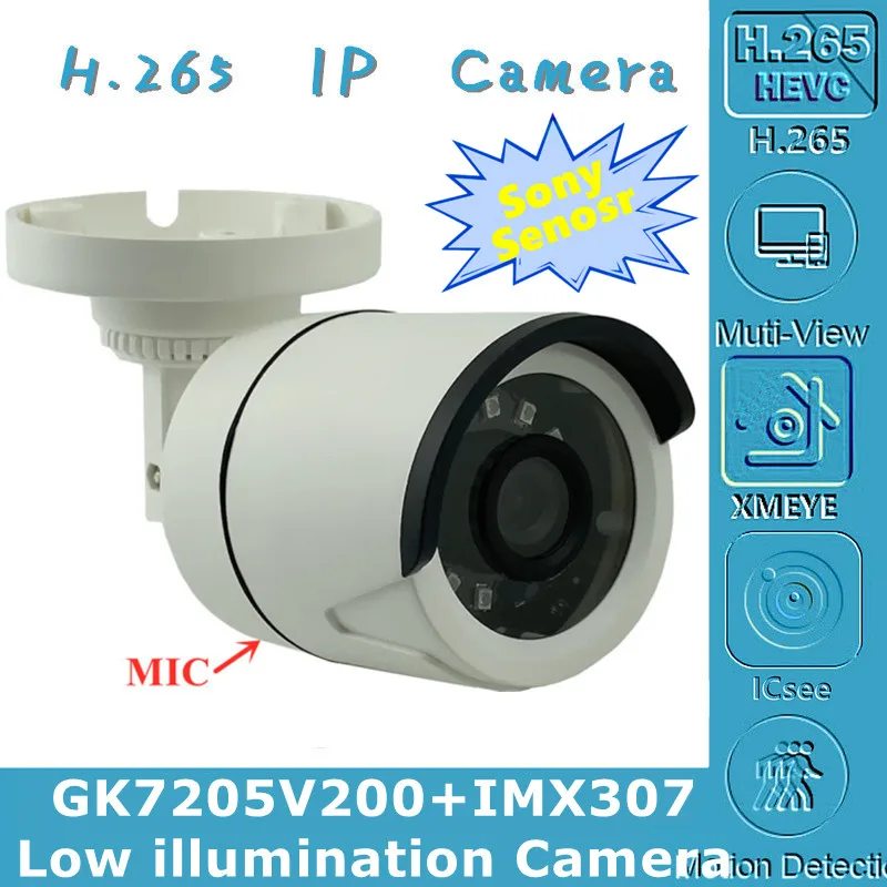 Встроенный микрофон аудио Sony IMX307 + GK7205V200 IP цилиндрическая камера H.265 Низкое освещение IRC Onvif VMS XMEYE Обнаружение движения P2P RTSP