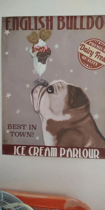 Картина на холсте с изображением английского бульдога, мороженого, ...