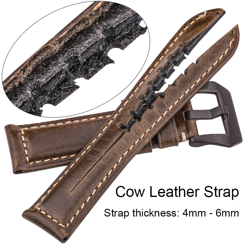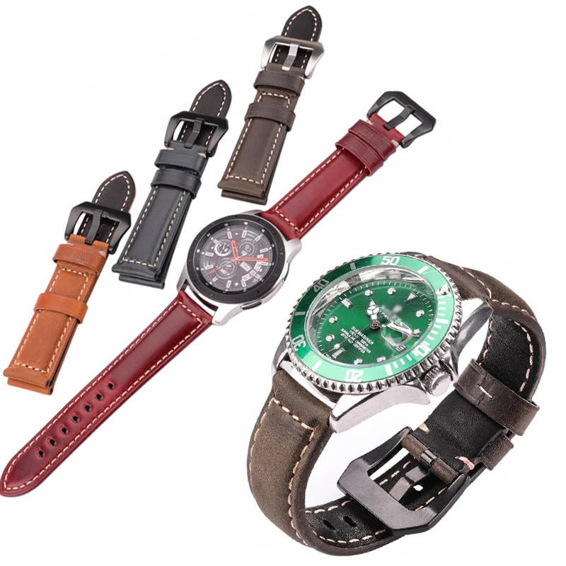Ремешок из натуральной кожи для мужских и женских часов, аксессуары для часов, браслет из воловьей кожи синего желтого Красного коричневого цвета, 20 22 24 26 мм