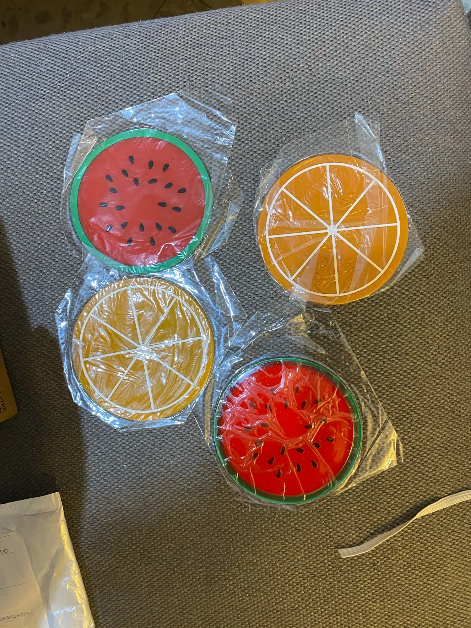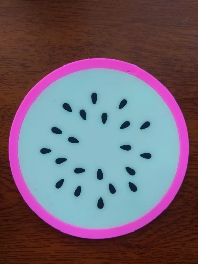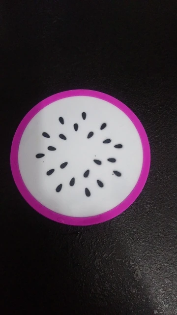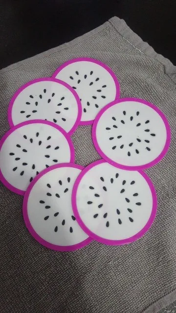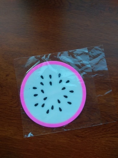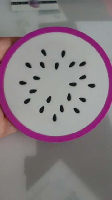 Очень мило! Немного меньше, чем ожидалось, но нет большого предложения. Он по-прежнему очень хорошо подходит моим чашкам. Это силикон, поэтому, когда вы установите его вниз, он не двигается! Это плюс. Киви, который я получил, был немного обесцвечивается и гораздо более полупрозрачен, чем остальные, и по сравнению с фотографией.