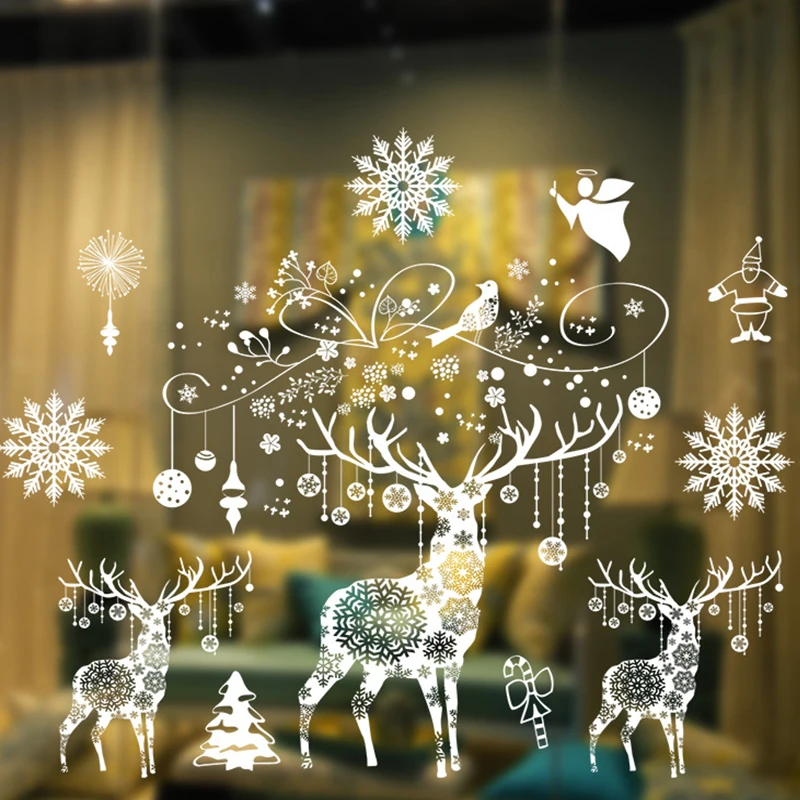 Съемные рождественские украшения Новогодние наклейки на окно на рож...