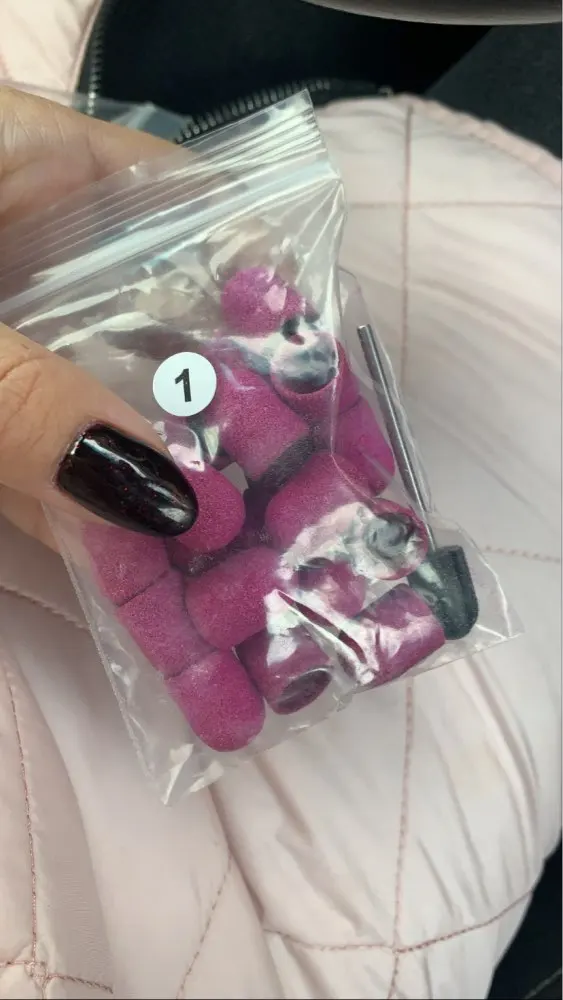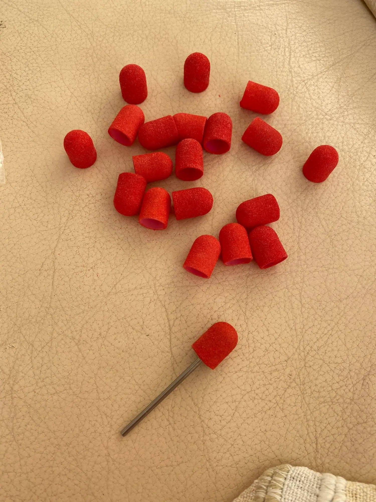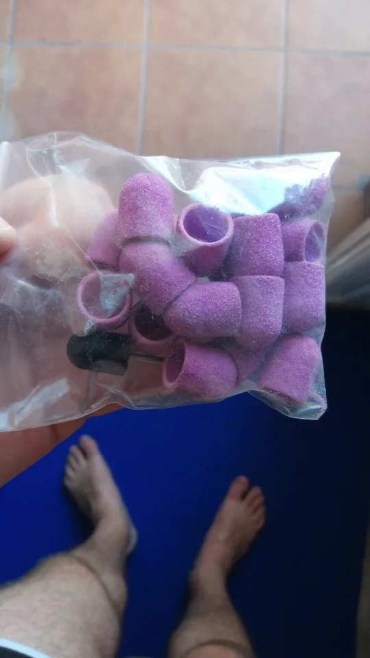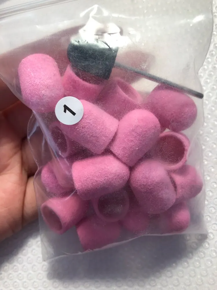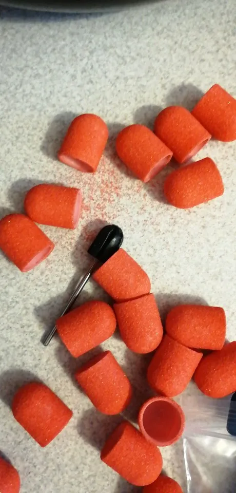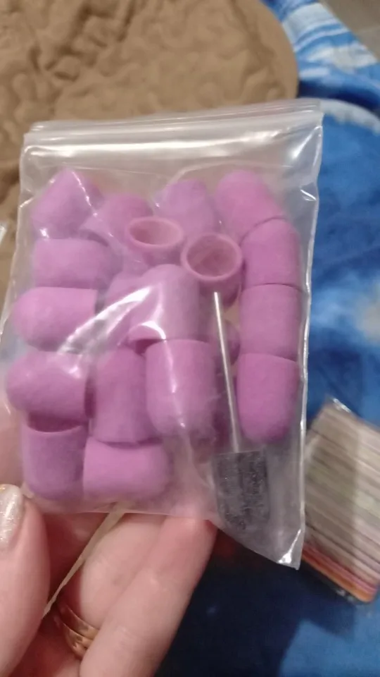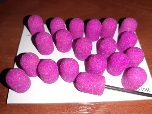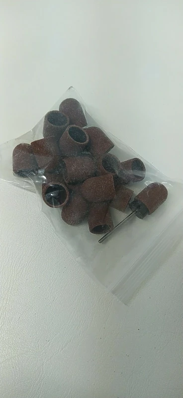Продавец быстро отправил товар. Колпачки большого размера, так как есть с чем сравнивать, заказывала у другого продавца, так пришли меньшего размера. Но что хочется сказать из минусов: сыпятся (пока перечитывала, осыпалось прилично), грит хотелось бы пожестче, вроде, как 80 заказывала. А такое ощущение что 120 пришли и очень туго одеваются колпачки на насадку. Одевала не до конца, так как потом снимать замучашься. Насадка сама отцентрована хорошо, попробовала на своём аппарате. Ставлю 5 за скорость сборки и доставки и за размер.