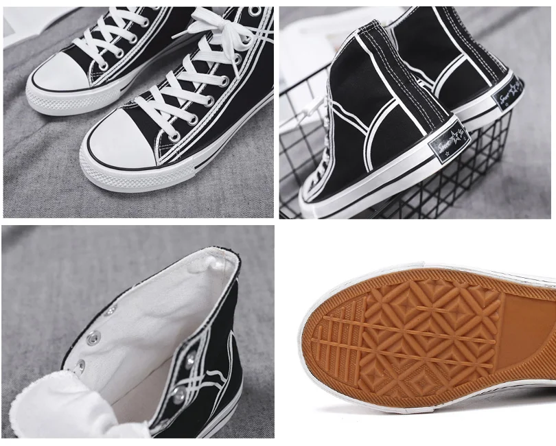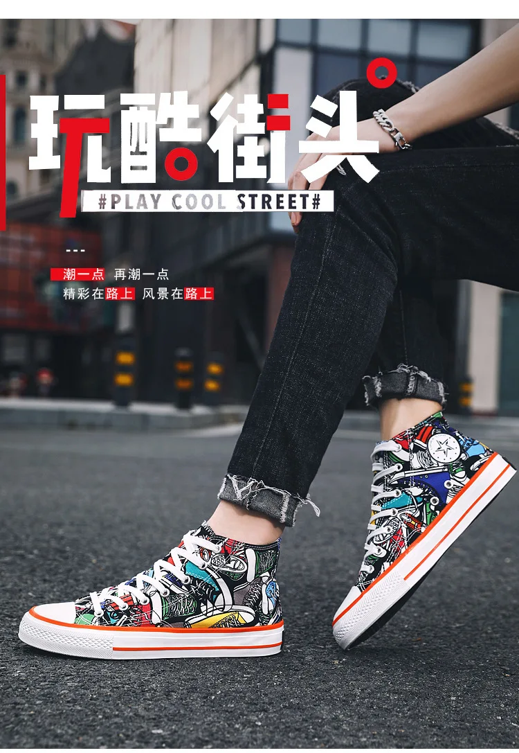 Мужская Вулканизированная обувь с высоким берцем; Повседневная парусиновая обувь с классическим принтом; Мужская обувь для отдыха на шнуровке; Сезон весна-осень; 2019