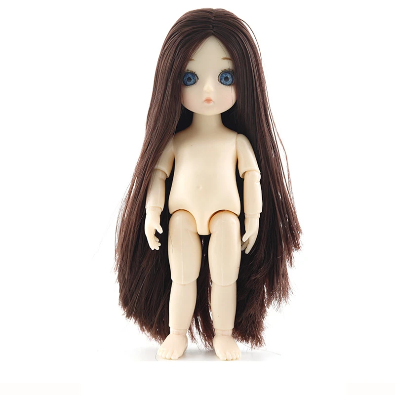 13 подвижная шарнирная Детская кукла BJD SD с 3D глазами кудри прямые волосы обнаженное тело 1/8 Мода DIY кукла подарок для девочек нормальная кожаВысота куклы: 16 смКоличество соединений: 13 соединений