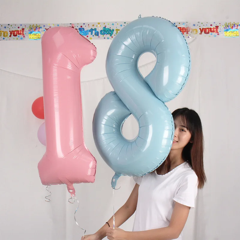 40 дюймов, синие, розовые, воздушные шары из фольги в виде цифр, 0, 1, 2, 3, 4, 5, 6, 7, 8, 9