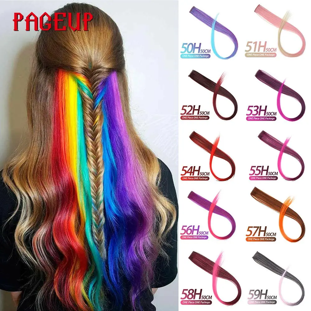 Pageup радужные Синтетические Искусственные волосы, Длинные прямые шиньоны с эффектом омбре для женщин, цветные накладные волосы блонд-розовый на заколке