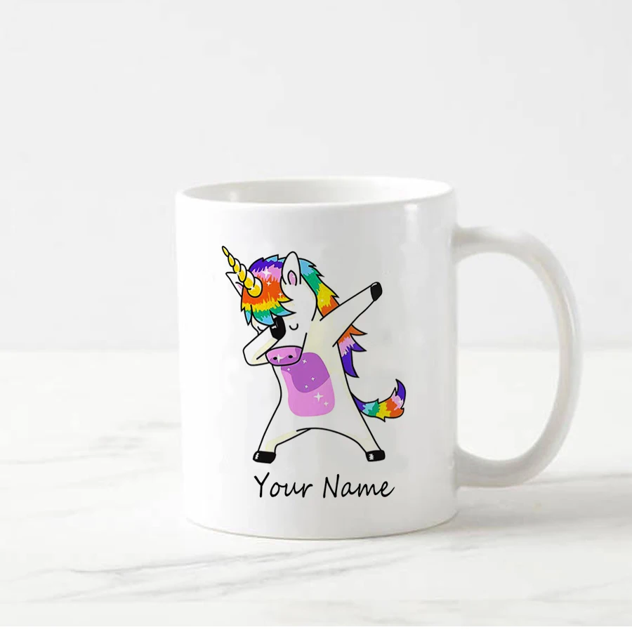 Персонализированная кофейная кружка с забавным принтом единорога, чайные кофейные кружки, чашка, подарок, имя, текст, Прямая поставка