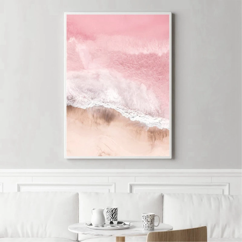 Пляжная Печать аэрофотосъемка с изображением розового океана, Картина на холсте, современный минималистичный плакат в скандинавском стиле, декор для гостиной, дома, стены