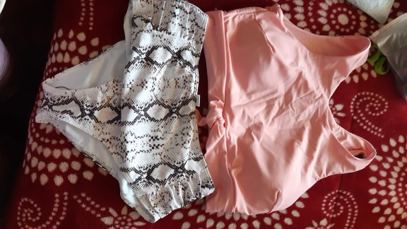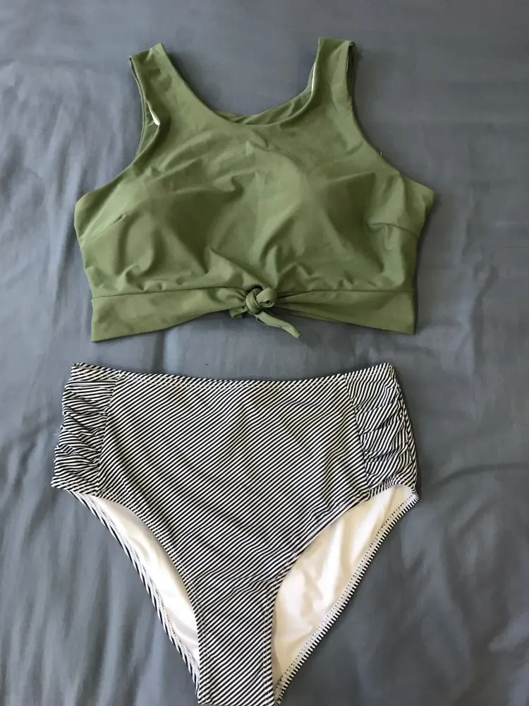 Me encantó el color y la tela. Llegó súper rápido (17 días). La parte de arriba está un poco más grande que la de abajo (proporcionalmente) pedí L para estar más cómoda y me quedó perfecto. Igual se ve increíble el top con unos shorts o con otra parte de abajo de bikini.