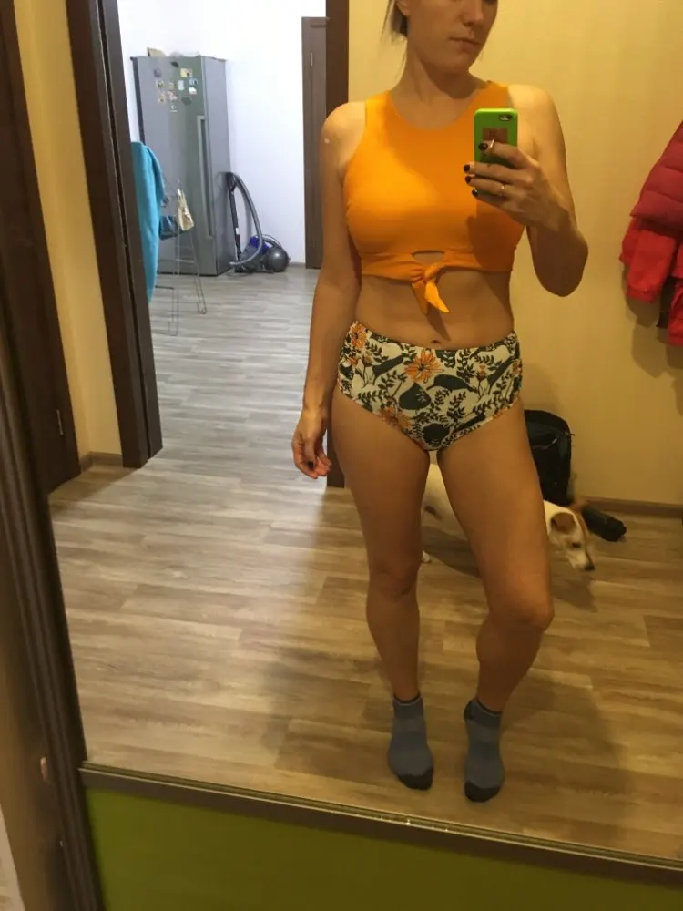 Купальник очень красивый, особенно топ. Заказывала М, на об-97 сел хорошо. Заказ пришёл быстро, за 700 рублей покупка очень выгодная