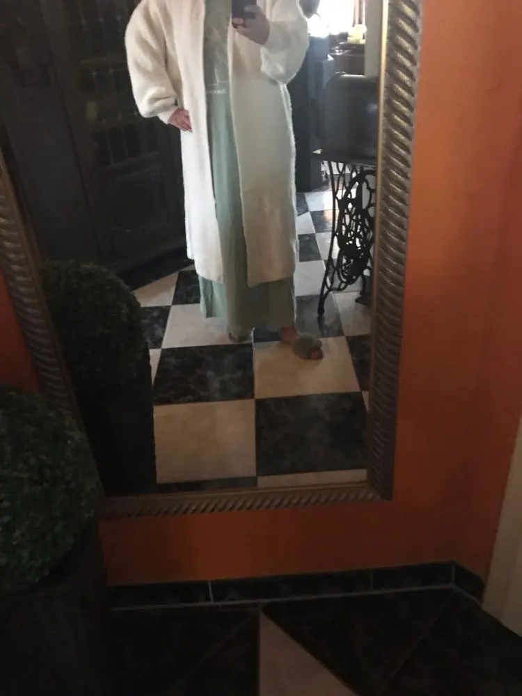 I cannot recommend this ENOUGH! It might seem a little pricey compared to goods you can usually get on Ali, but the price is more than worth it! Such heavy, soft material, amazing quality. I am 165cm and it stops just above my ankle. Absolutely perfect for winter. Don't hesitate, buy it!