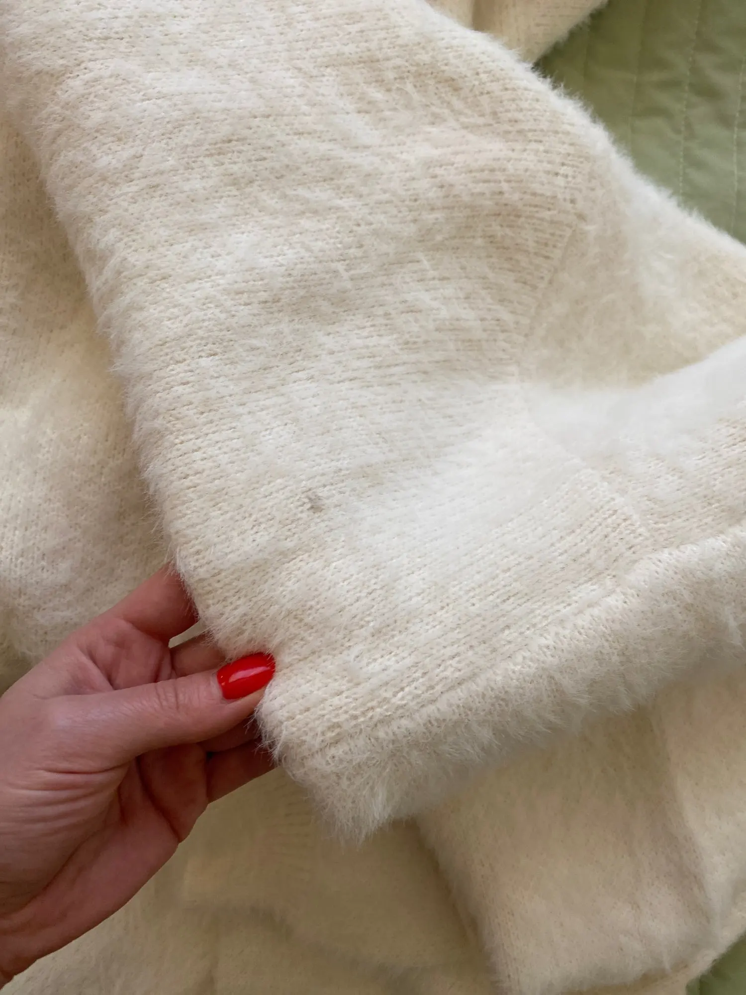 Придраться не к чему! Супер продавец, быстрая отправка и доставка. Но на мои объёмы 104- 82- 102, рост 172 , очень мохнато, супруг попросил носить эту бурку не при нем) на фото вывернула на изнанку, она более нежная В итоге распорола и сшила длинную подушку для дочери, пледик крохотный получился ) Продавцу рекомендую не жадничать и отправлять поясок в подарок, может быть и остался кардиган в живых)