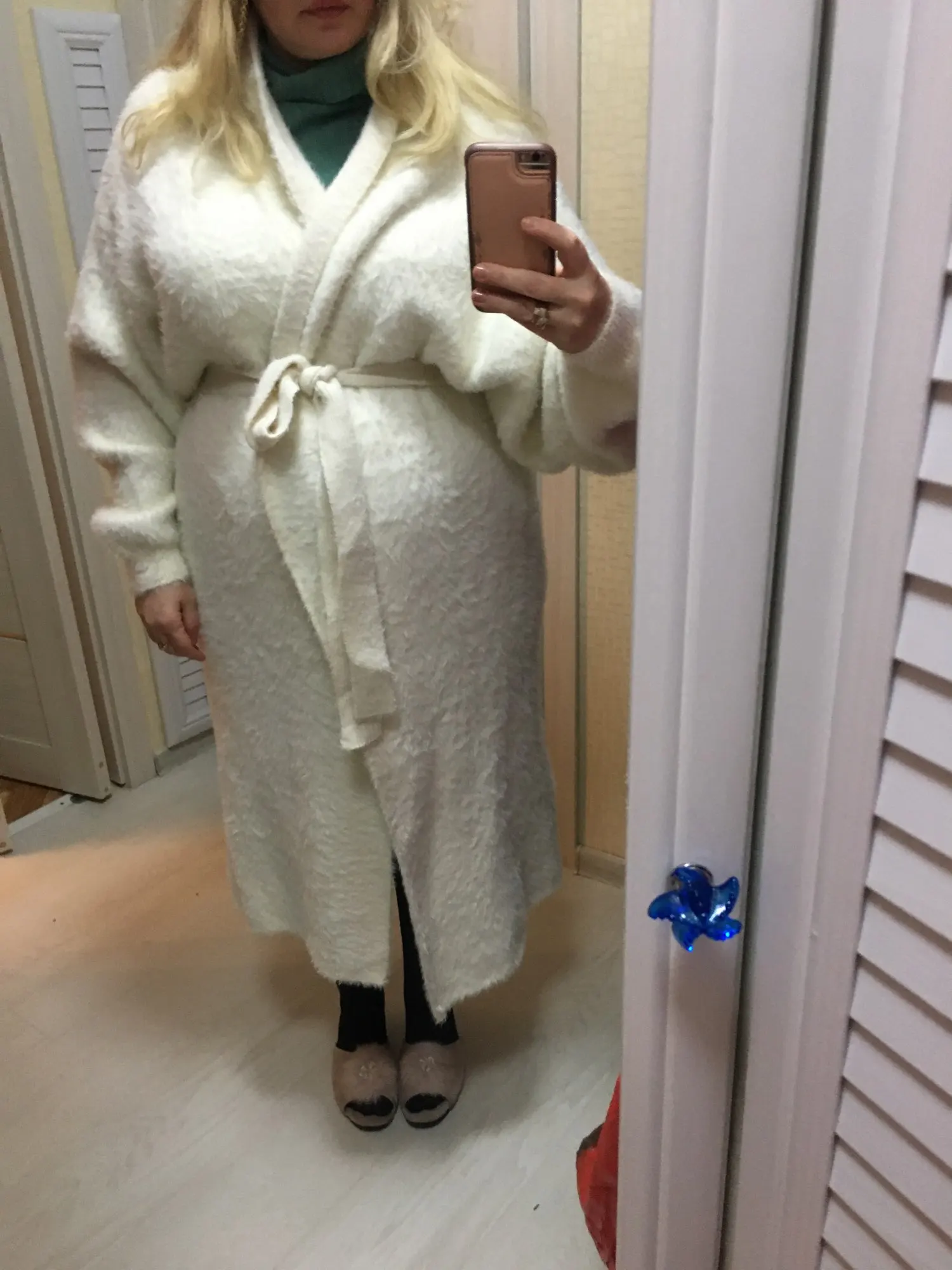 Ранее заказала кардиган, он крутой, теперь взяла пояс, он не такой пушистый, и без него смотрится лучше, но в холодную погоду, он выручает