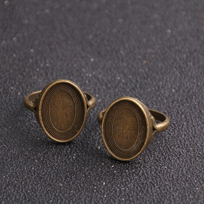 Винтажное кольцо овальной формы 13x18 мм, 2 шт., пустая оправа для камеры, плоский стеклянный кабошон, аксессуары для ювелирных изделий