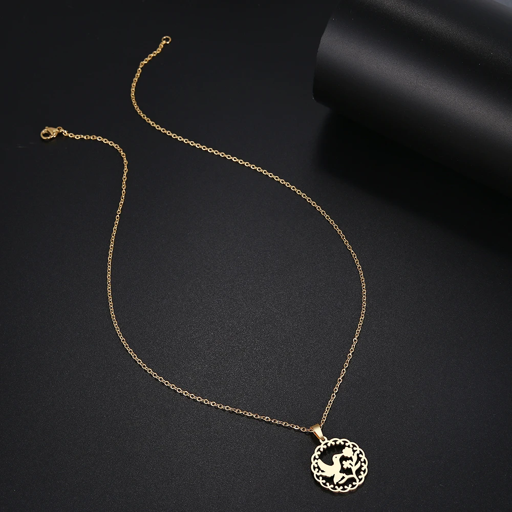 Ожерелье из нержавеющей стали для мужчин и женщин, ожерелье с подвеской золотистого и серебристого цвета с цветами для поцелуев птиц, ювелирные изделия для помолвки