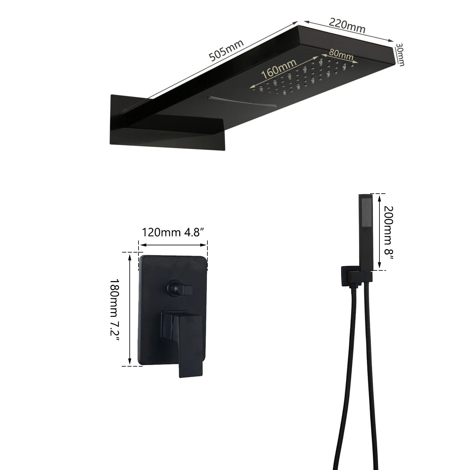 Настенный набор для душа, Черный Матовый душ Rubinetto Doccia, водо...