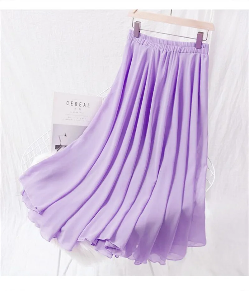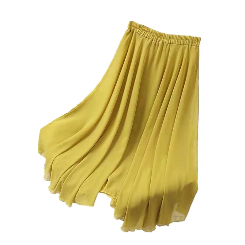 Женская шифоновая плиссированная юбка макси, длинная юбка черного, красного, розового и синего цветов, весна-лето 2022