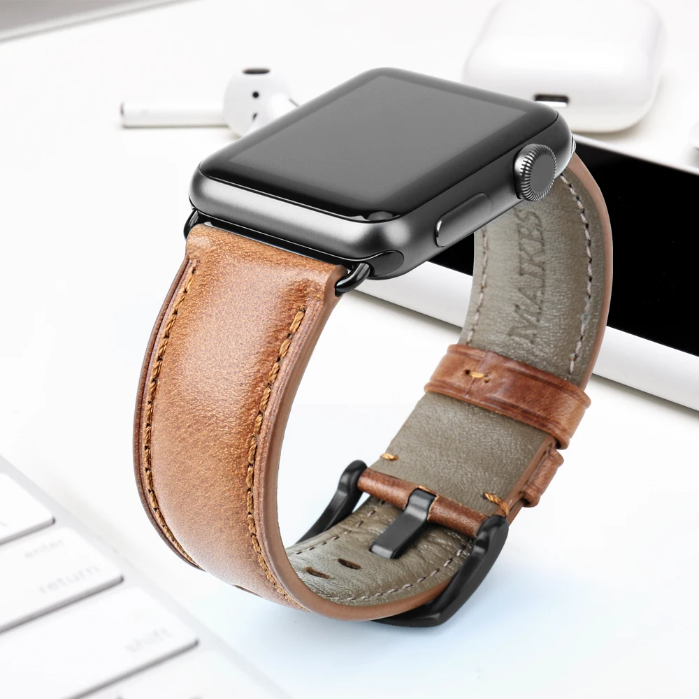 Кожаный ремешок MAIKES для Apple Watch, 44 мм, 40 мм, iWatch Series 4, 3, 2, 1, 42 мм, 38 мм