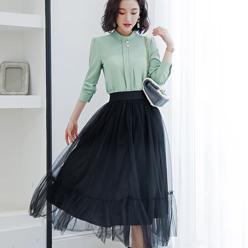 Женская Офисная рубашка Lenshin, мягкая и удобная блузка с длинными рукавами и стразами, свободный зеленый Топ для женщин
