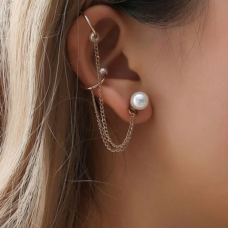 Жемчужная цепочка, зажим для ушей, модный, с искусственным жемчугом...