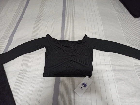 Отличный топ,коротковат только на рост 164,прям под грудью кончается,а так отличный,ткань очень приятная, брала размер м, не пожалела,так как в груди очень обтягивает(размер сейчас 3-4).у кого небольшая грудь можно и s взять