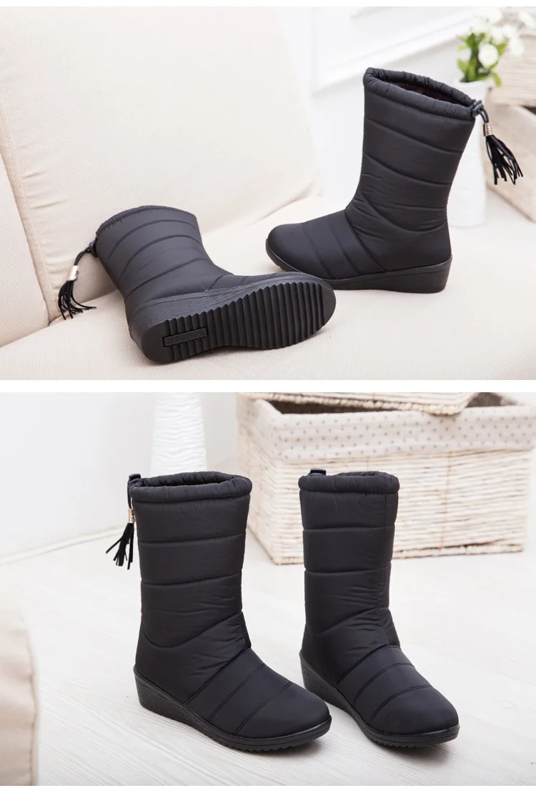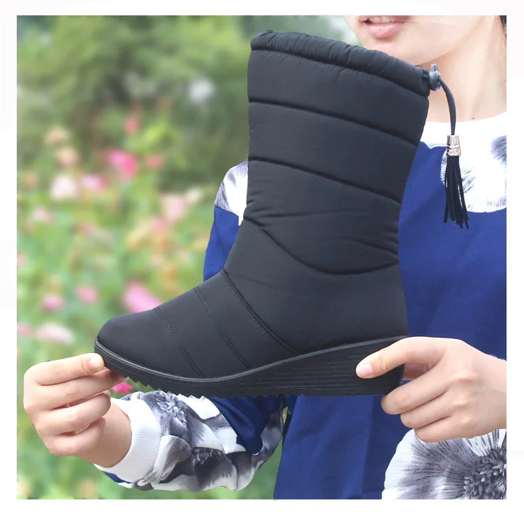 Модные водонепроницаемые зимние сапоги, женские сапоги до середины ...