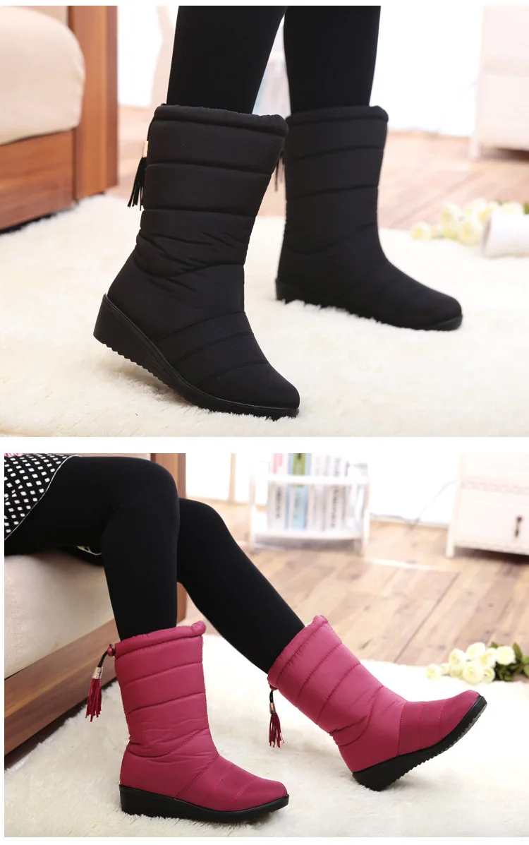 Женские Водонепроницаемые зимние ботинки до середины икры, пуховые ...