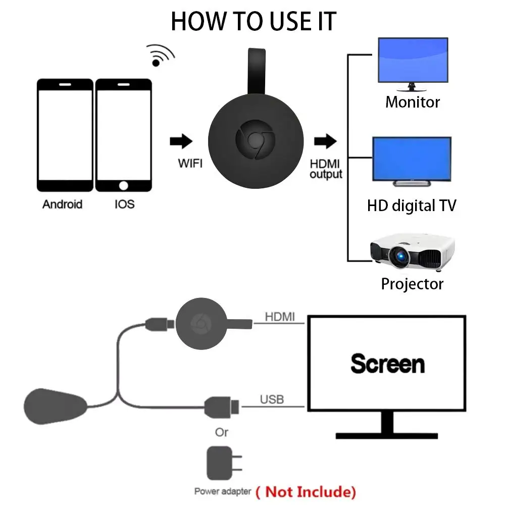 Для MiraScreen G2 TV Stick Dongle Crome Cast HDMI-совместимый Wi-Fi...