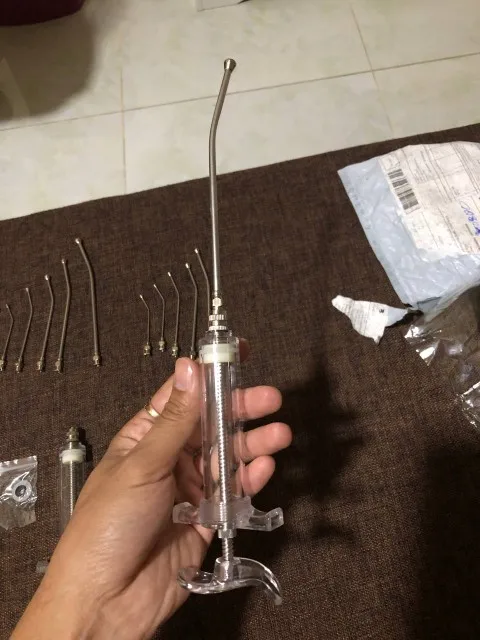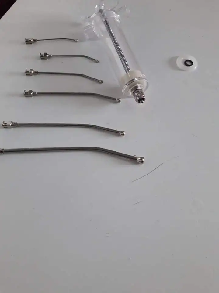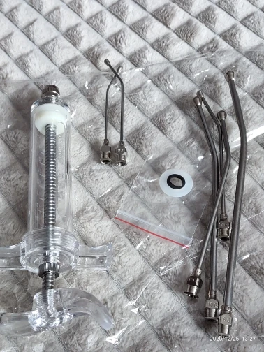 Хороший шприц герметичный ,иглы насаживаются прочно,не люфтит ничего, ремкомплект в наличии.Мне для промывания горла и лакун пригодятся только две канюли, остальные лишние, спасибо заказом довольна.У кого проблемы с тонзилитом рекомендую к покупке,в России не смогла купить хотя долго искала.