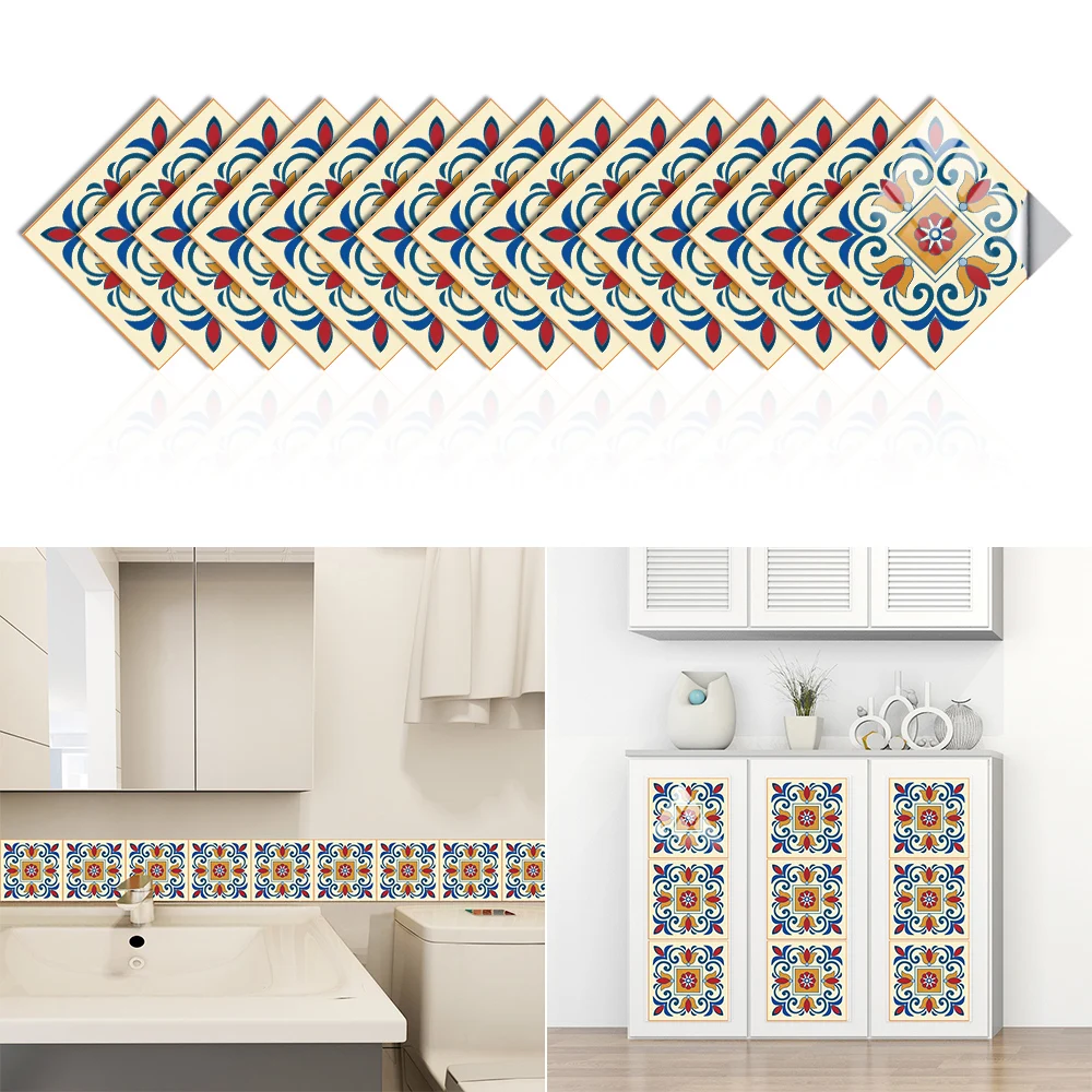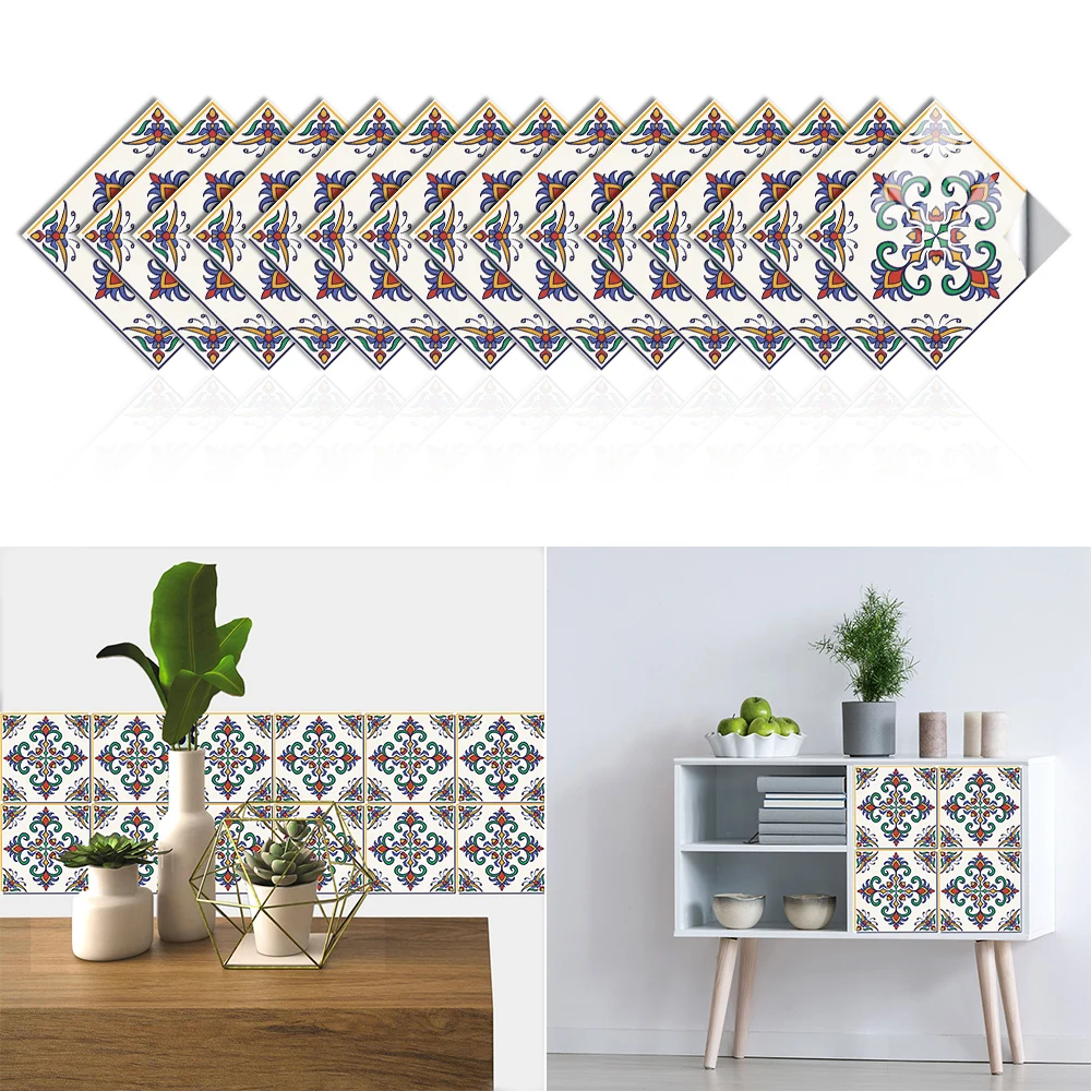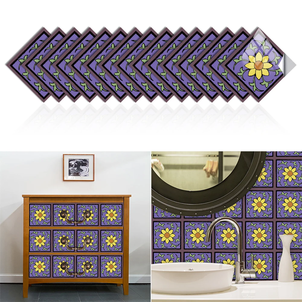15 шт.компл. красочная плитка, наклейка на стену, домашний декор, ванная комната, кухня, талия, искусственная кожа, ПВХ, сделай сам, диагональная роспись пола