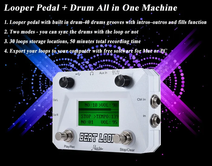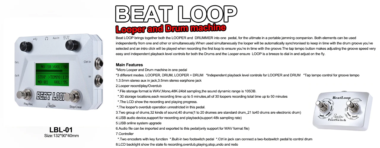 Rowin LBL-01 гитарный ритм петля педали барабан петлер машина 40 барабанов ритм 50 мин петлер время записи один человек группа