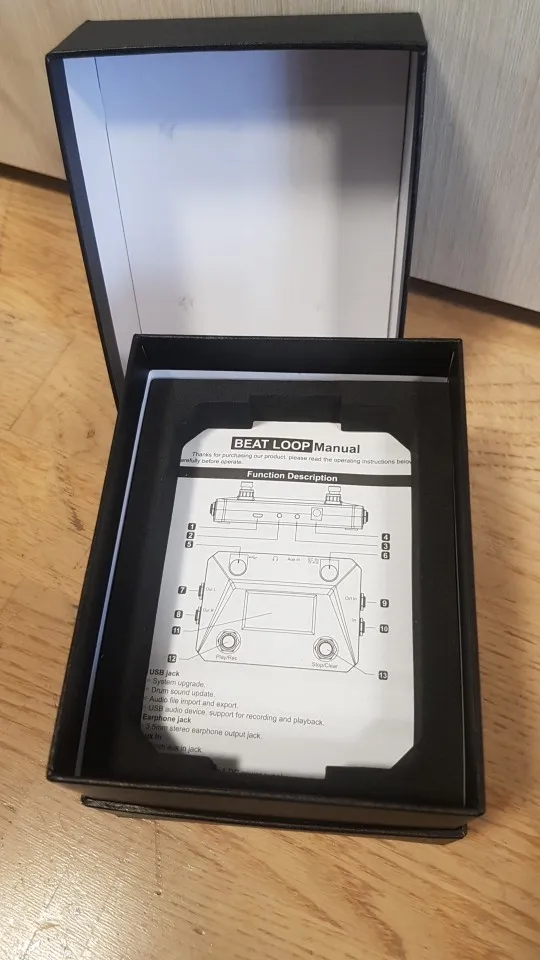 Заказывал 11.11, должна была прийти до 27.01, Посылку ждал 2.5 месяца, пришла с опозданием в неделю 03.02, открыл спор с продавцом 28.01 так как все сроки защиты заказа и доставки истекли (несмотря на то что другие 10 заказов пришли во время и даже раньше положенных сроков) , потребовал возврат денег, на что продавец ушёл в отказ аргументируя это тем что посылка уже в стране, назначения, присылал скрины с почты и доказательства, без результатно, пусть это останется на совести продовца . Протестировав и попробовав сей агрегат могу сказать что за свои деньги вещь достаточно неплохая, 40 ударных ритмов (20 акустических и 20 электронных типов) От себя могу сказать что качество звука в целом приемлемое, для домашних репетиций, репетиций и с группой, небольших концертных выступлений в целом подойдёт. В данном аппарате имеется два типа работы с лупером (с синхронизацией и без неё) режим синхронизации работает не совсем коректно, планирую снять обзор данного девайса на ютуб, ссылку приложу.