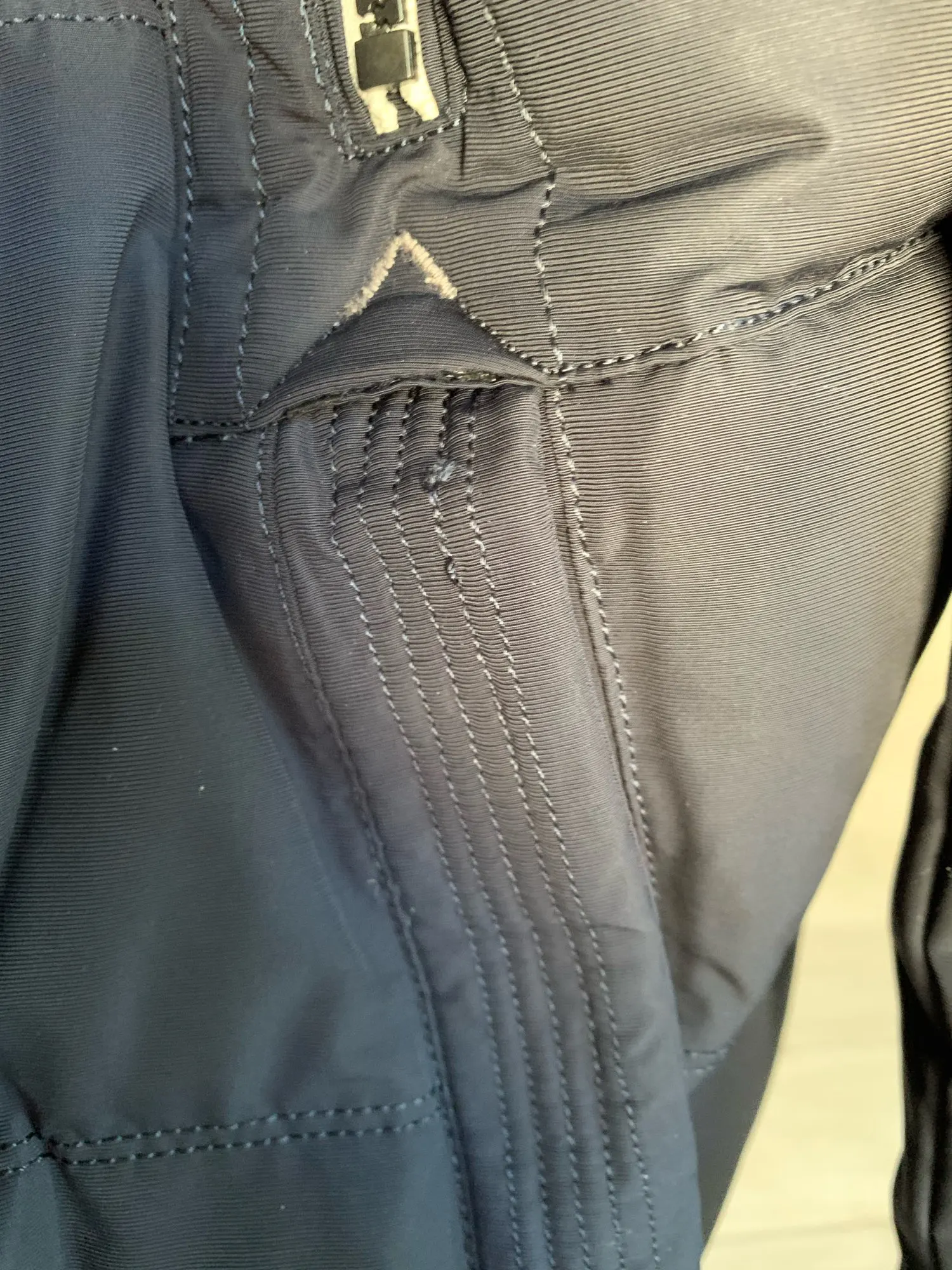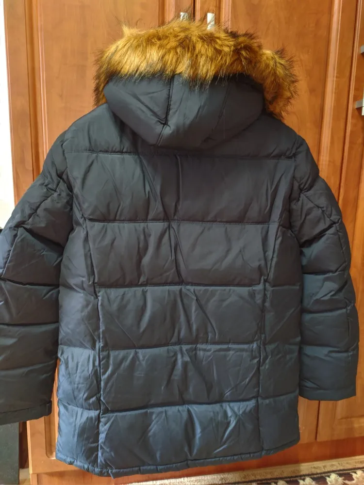 Впечатление неоднозначное. Главное - муж со своим ростом 187, весом 110 кг, ОГ- 112, ОТ- 109 (живот),ОБ-109 поместился в куртку свободно, осталось место под тонкий свитерок или жилет, попа прикрыта полностью. Обычно берём 56-58 размер. По факту ОГ-134,длина-87 см(см.фото). Куртка тонкая, лёгкая (вес бандероли 1.770), подклад синтепон, на позднюю осень или раннюю весну. На первый взгляд вид достойный,начнёшь присматриваться-70 процентов строчек кривые, даже на карманах, полосы на рукавах разной величины. Мех - кусок синтетического войлока,отстегнули - выбросили, капюшон не глубокий, отстёгивается. По бокам и в низу рукавов непростёганные вставки, четыре кармана - два снаружи, два внутри на хлипких замочках, не глубокие. Замок с двумя бегунками - можно одновременно расстегнуть снизу и сверху, застёгивается с трудом. Ткань - болонь, шуршит. Утяжек в поясе и внизу нет. Брал ездить на работу. Цена - 68.19$, явно завышена. Доставка быстрая.Продавцу спасибо.