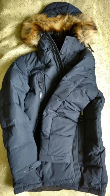 Отличная куртка. На российский размер 50 идеально подошел размер М. Ткань добротная, пошив фабричный, фурнитура качественная. Мех искусственный, отстёгивается. Без него куртка выглядит на мой взгляд лучше. Брали на распродаже за 3200 с копейками. Доставка курьером на дом. Довольны покупкой!